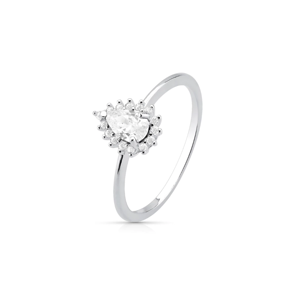 Anel Solitário Gota Cristal Cravejado – Prata 925 Legítima