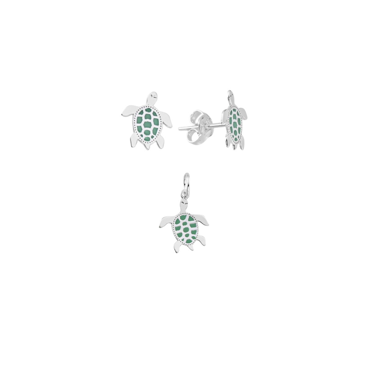 O Brinco e Pingente Tartaruga Marinha em Prata 925 – Coleção Lua do Mar representa proteção, sabedoria e longevidade.