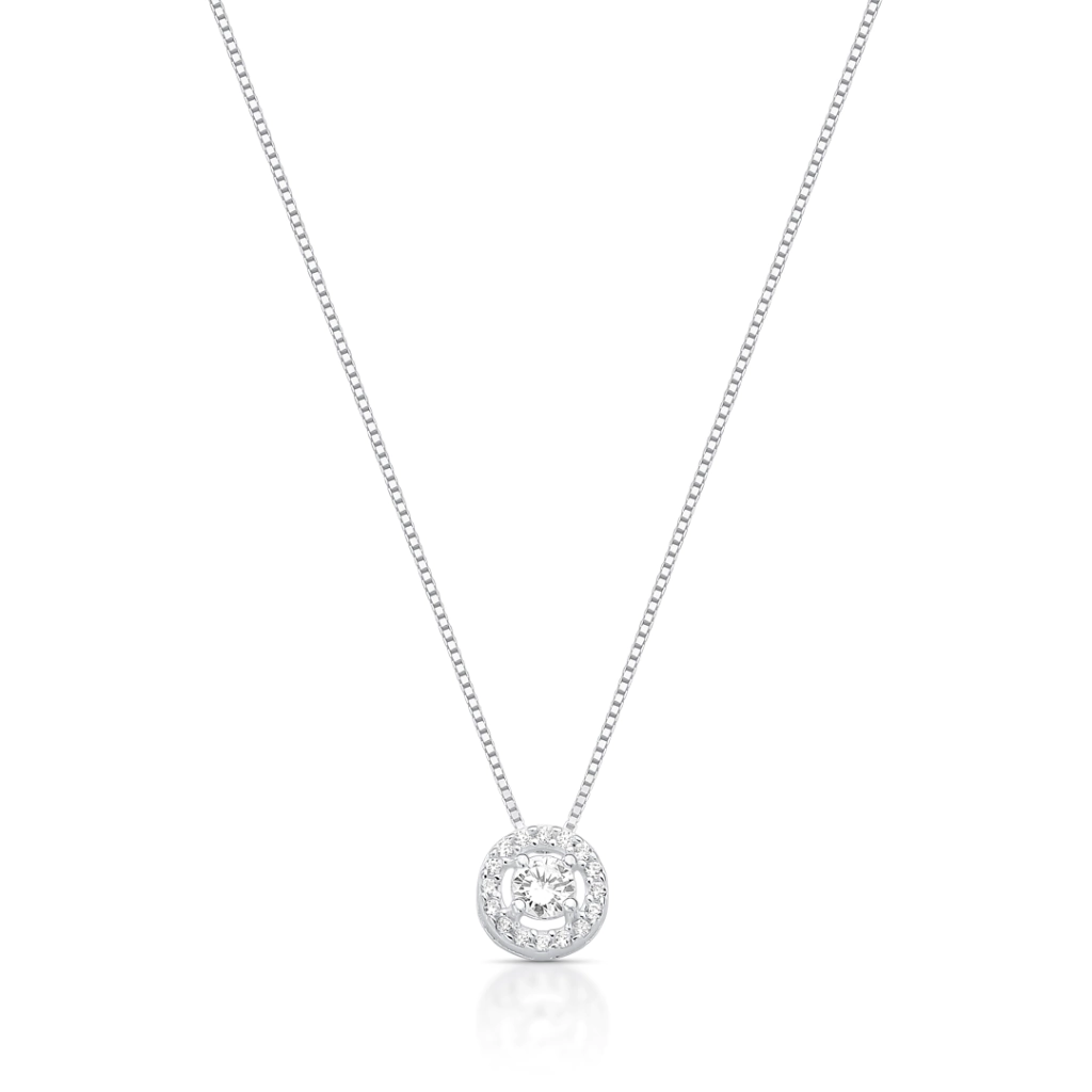 A Gargantilha Círculo Cravejado Ponto de Luz é aquela peça delicada e sofisticada que não pode faltar no porta-joias. Produzida em Prata 925 legítima, traz um pingente redondo cravejado com zircônias que iluminam o look com muito brilho e elegância.