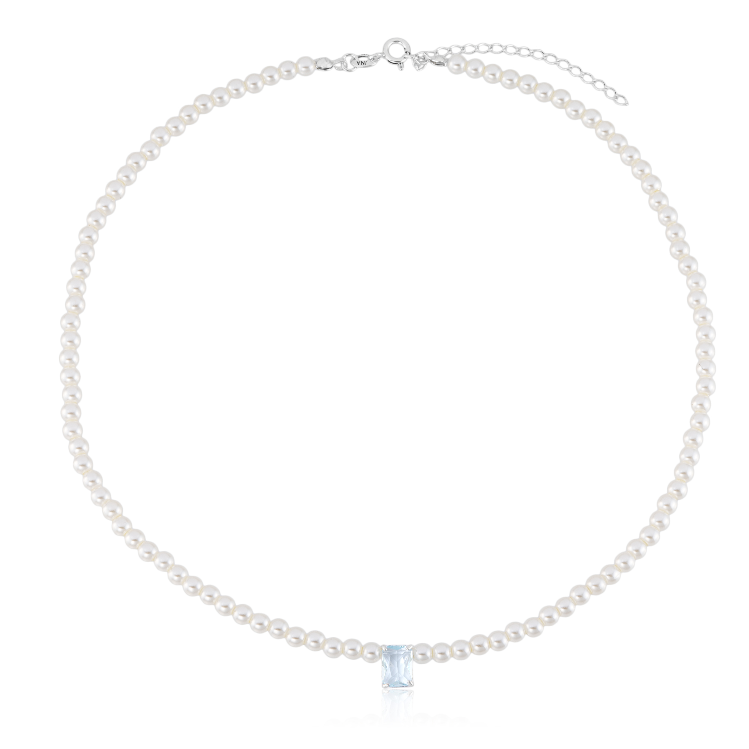 A Gargantilha de Pérolas com Pedra Retangular Aquamarine em Prata 925 é uma joia elegante que une tradição e frescor em uma única peça.