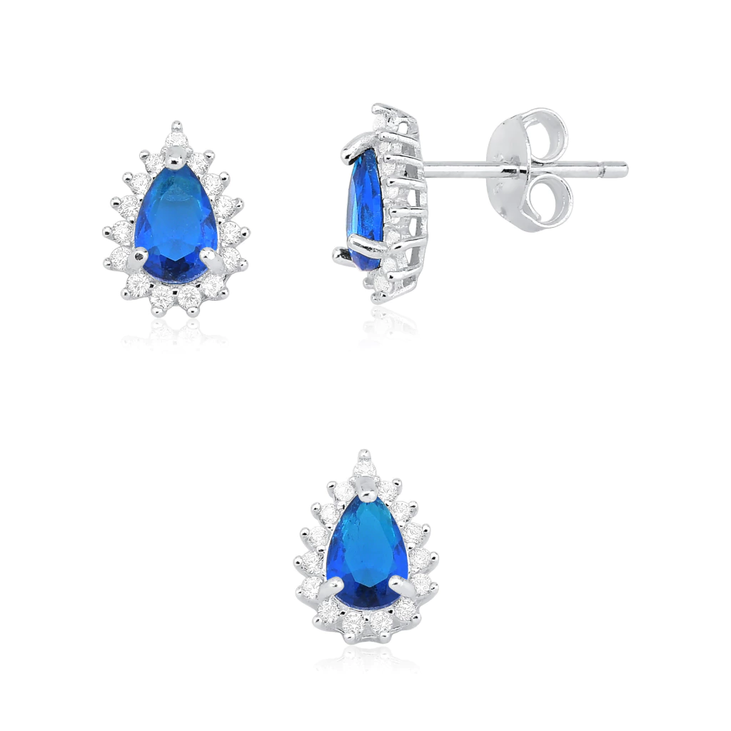 Kit Brinco com Pingente Gota Safira Cravejado – Prata 925 Legítima
