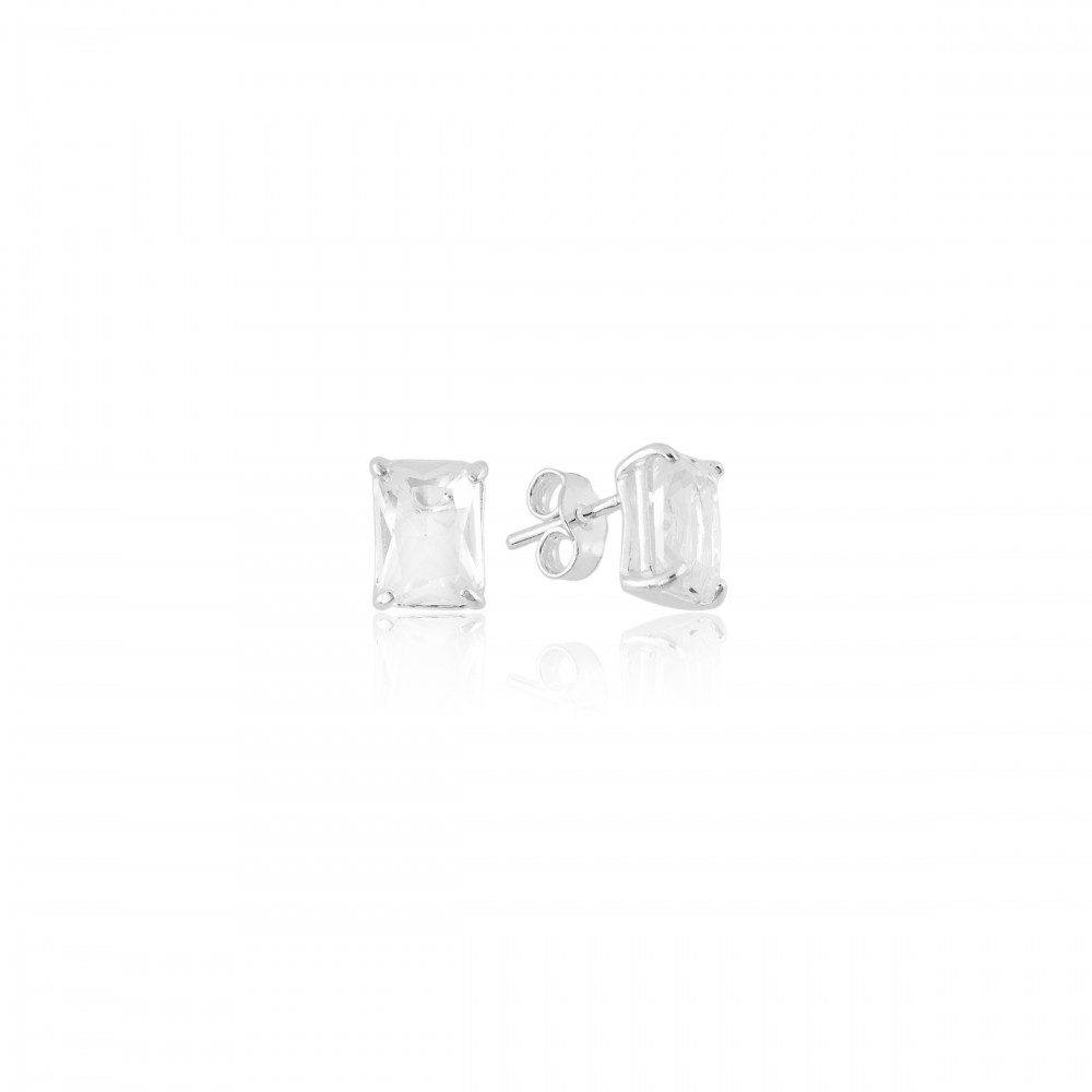 Brinco Retangular Feminino Cristal Minimalista Prata 925 Luz Viva
