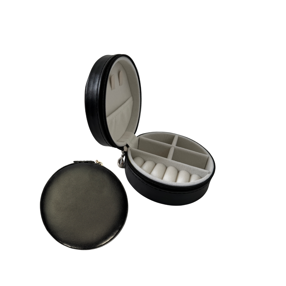 Porta-Jóias Redondo em Couro Sintético com Zíper
