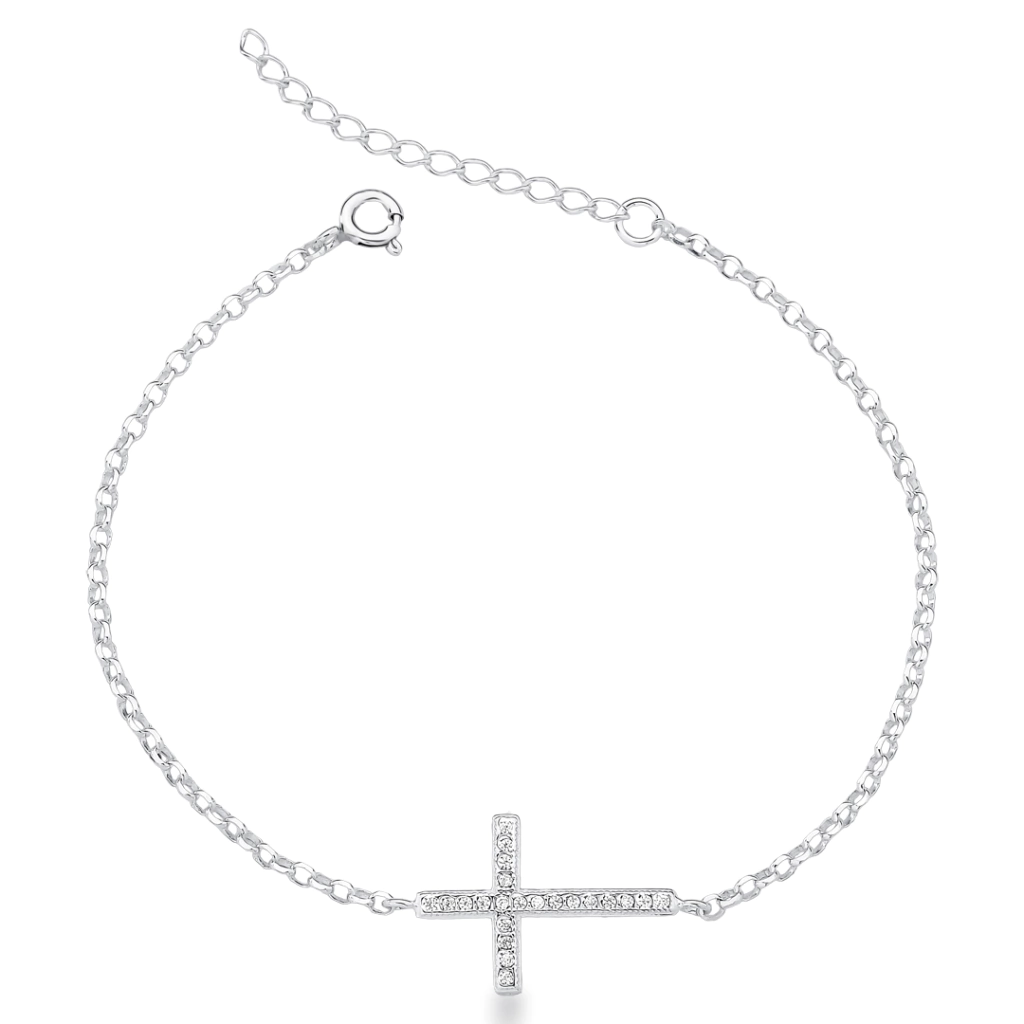 A Pulseira de Cruz Cravejada em Prata 925 legítima é a joia ideal para trazer brilho e simbolismo ao visual. Seu design delicado com corrente Elo Português 040 valoriza o pingente de cruz cravejado, criando um acessório sofisticado, moderno e cheio de personalidade.
