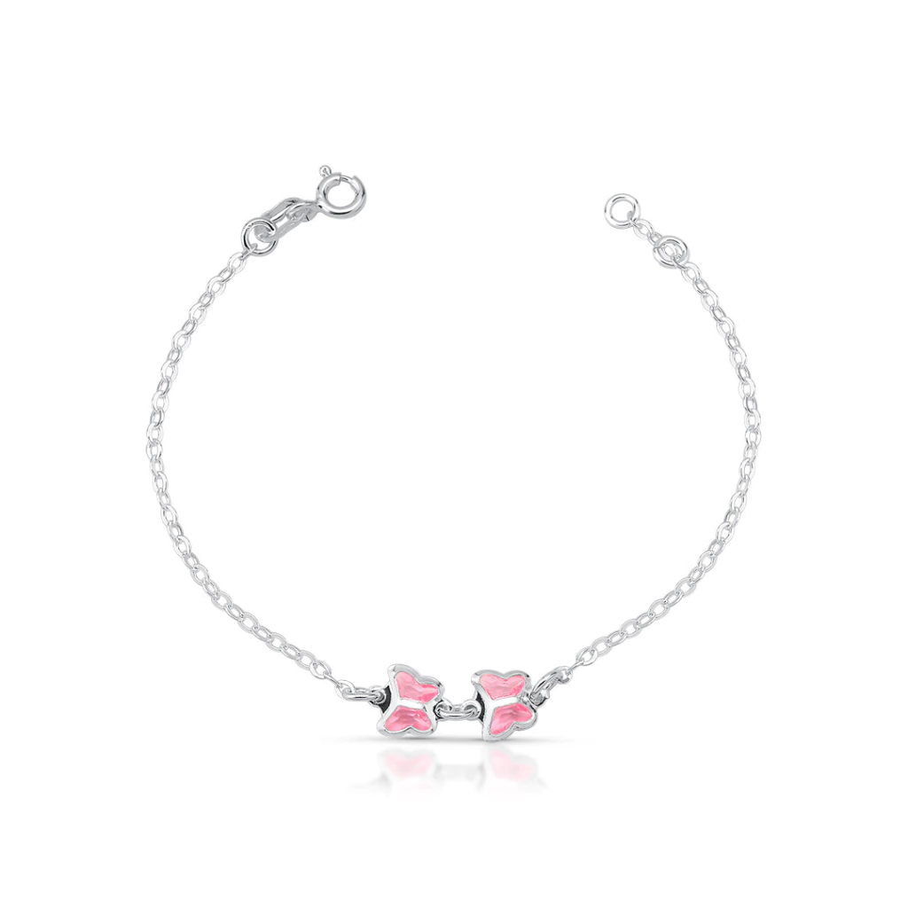 Delicada e encantadora, a Pulseira Infantil 2 Borboletas Rosa é a escolha perfeita para iluminar o visual das pequenas.