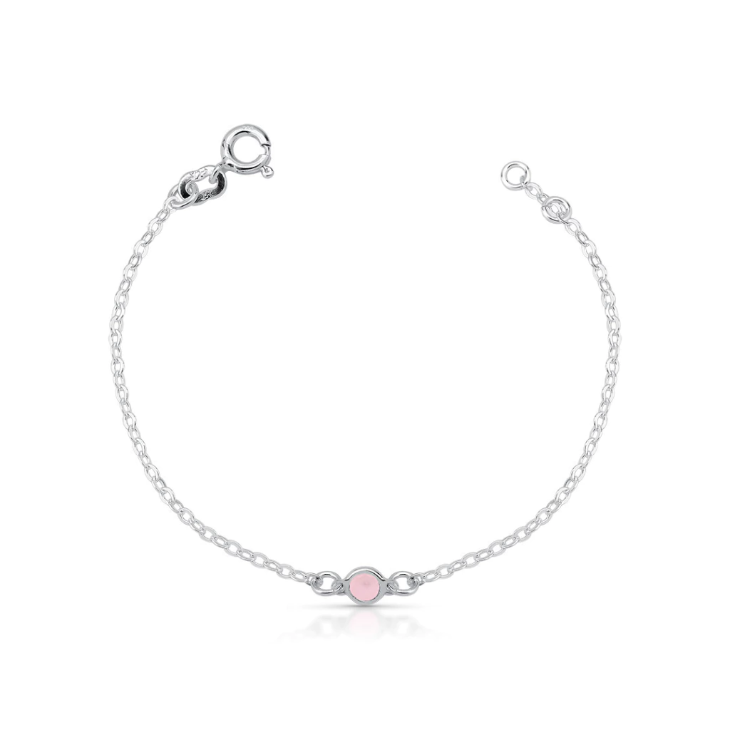 A Pulseira Infantil Ponto de Luz é confeccionada em Prata 925 legítima, trazendo delicadeza, segurança e sofisticação. Seu design clássico com a corrente Elo Português 040 e o detalhe do ponto de luz Quartz Rosa diciona charme e pureza à peça.