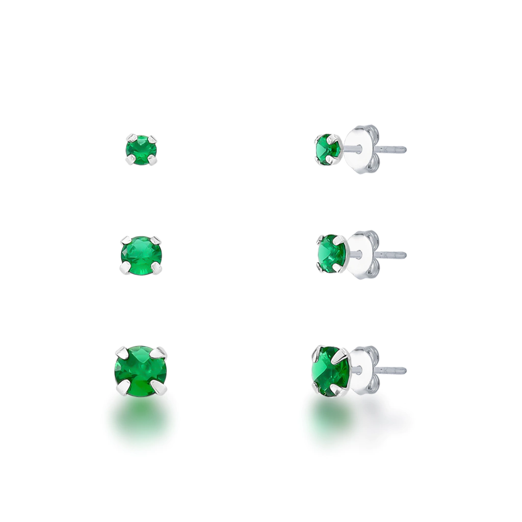 Trio de Brincos Ponto de Luz Verde Prata 925 Aurora